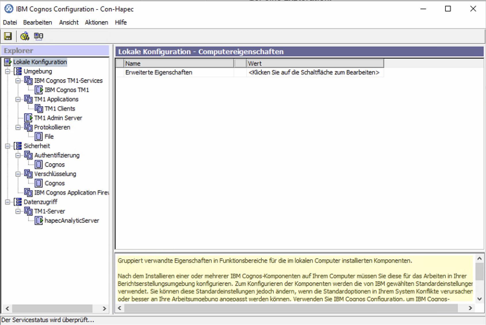 Ablage Sage 100 Toolbox Metadaten Cognos Config Analytic Server gestartet