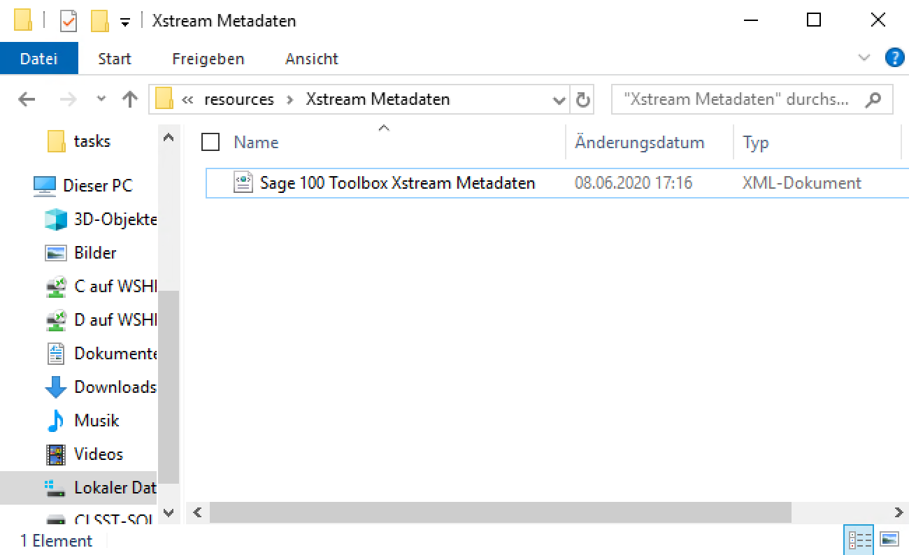 Implementierung Sage 100 Toolbox Xstream Metadaten ablegen