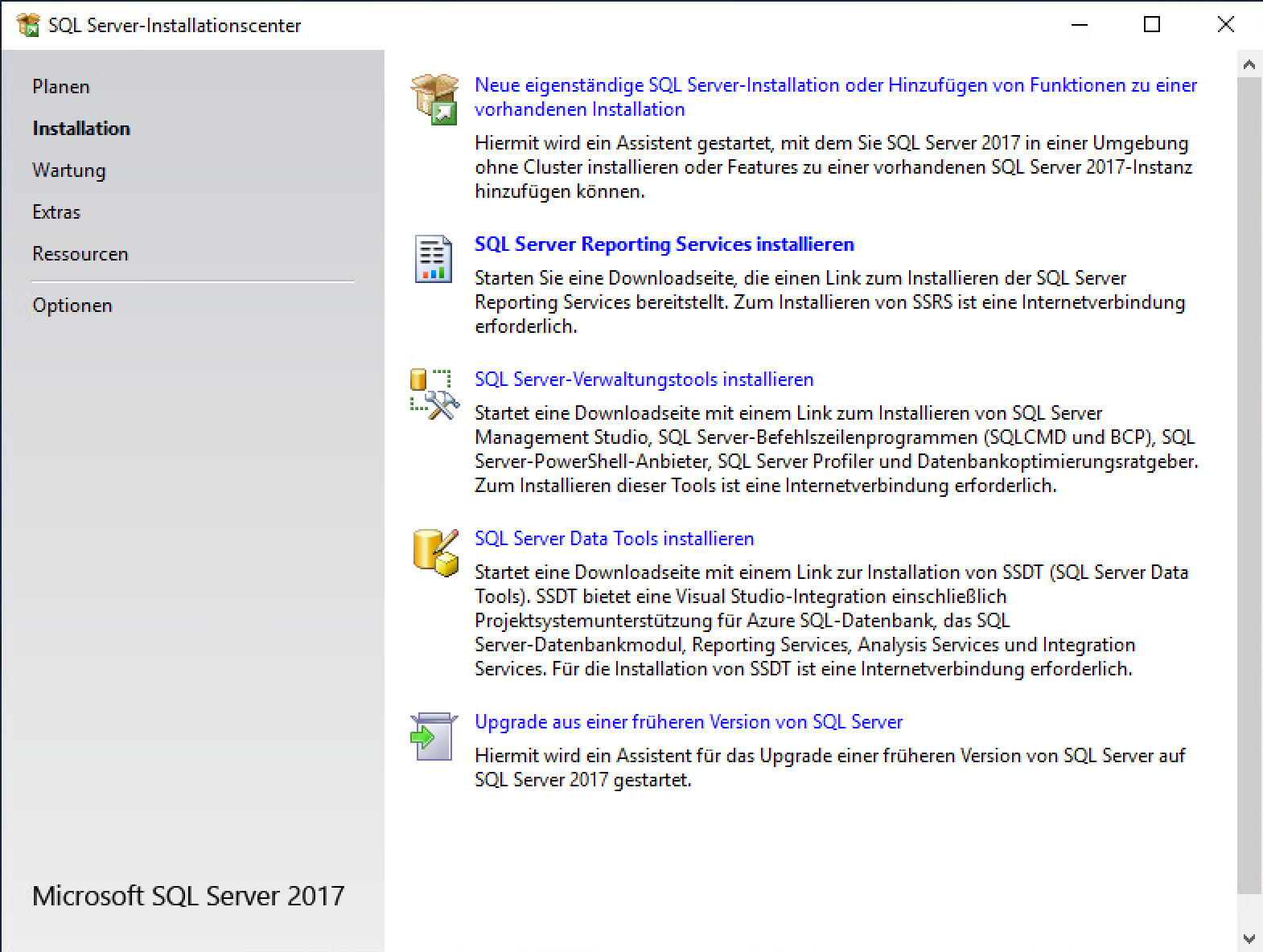 Installation Microsoft SQL Server 2017 Installationscenter.png
